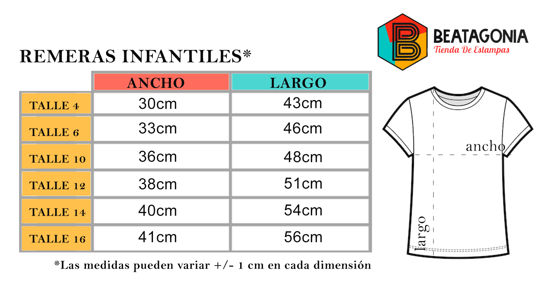 RECOMENDAMOS COMPARAR CON ALGUNA REMERA QUE TE VAYA CÓMODA, MIDIENDO EL LARGO DESDE LA COSTURA DEL CUELLO HASTA LA PARTE INFERIOR DE LA REMERA Y EL ANCHO DE SISA A SISA (AXILA A AXILA, TOMANDO LAS COSTURAS COMO REFERENCIA)